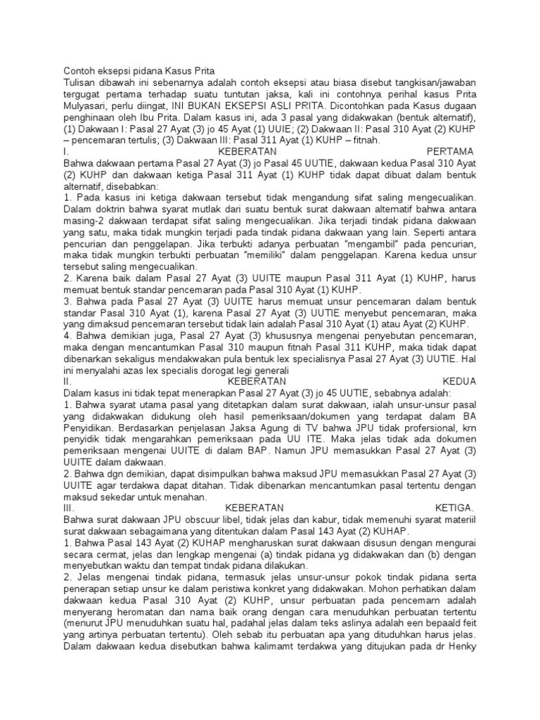 Contoh Kasus Asas Akusator Dan Inkisitor : Contoh Eksepsi Pidana Kasus Prita - 10) asas akusator dan inkisitor (accusatoir dan inquisitoir).